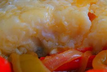 Cuando la piperrada esté blanda pero aún al dente, mojaremos con vino blanco, dejaremos que el alcohol se evapore y a continuación apagaremos el fuego y meteremos la tajada de bacalao encima de la piperrada. Taparemos y dejaremos que le bacalao acabe de cocinarse con el vapor que aún quede en la cazuela.