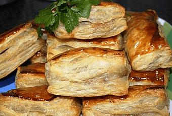 NOTA: esta receta se puede sustituir la masa de hojaldre por láminas de lasaña (ya precocinada). En éste caso, en vez de ir al horno, se lleva a cocer en agua hirviendo con un poco de sal y aceite de oliva, hasta que la pasta esté hecha – lo que indique las instrucciones del producto. Los restantes pasos son iguales.