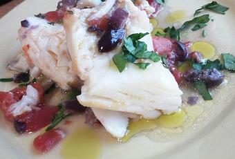Ingredientes bacalao con tomate y aceitunas negras para 2 personas: