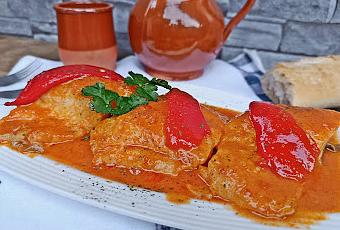 Volvemos a poner en la cazuela y colocamos los lomos de bacalao en la salsa.