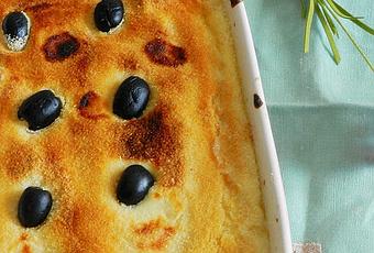 En un recipiente apto para el horno colocamos la mezcla de patata, cebolla y bacalao todo mezcladito. Volcamos encima la bechamel con nata. Espolvoreamos pan rallado y colocamos algún trocito de mantequilla. Decoramos con unas aceitunas negras y llevamos al horno precalentado a 180º unos 15 minutitos.