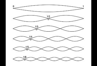 Calculé la longitud de las cuerdas usando afinación Pitagórica. Son matemáticas basadas en la fracción 2/3. Empecé con la cuerda más larga, dándole una longitud simbólica en pixels. Cuando se corta a 2/3 de su longitud, da una quinta parte. Si la cortas por 1/2, da un octavo. 3/4 de longitud, una cuarta parte. A partir de estos sencillos números, calculé las longitudes relativas de todas las notas de la pieza musical."Web de Alexander Chen