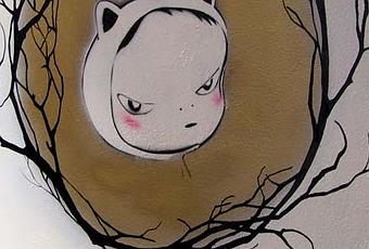 La puerta del baño de las chicas, junto a una versión de Nasti de Plastic sobre un motivo de Yoshitomo Nara.