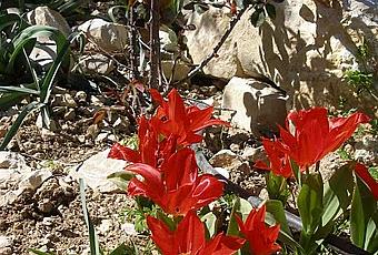 Dar un toque de colorido al jardín no tiene que ser sinónimo de gastar grandes cantidades de dinero. Los bulbos de otoño, que ahora florecen, resultan sumamente fáciles de encontrar en grandes superficies y a precios bajos. Estas Tulipa praestans tan llamativas son de bulbos comprados en Lidl. Teóricamente, habrían de naturalizarse bastante bien. De color muy intenso, resultan de agradecer cuando aún el aspecto del jardín es algo triste. Quizás en épocas en las cuales ya hubiera algo más en flor me resultarían demasiado estridentes.