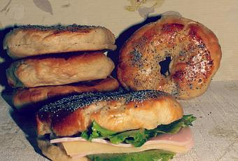La textura de los bagels es como la de los bollos, esponjosos, con la diferencia de que, como primero los salteamos, luego los cocemos y finalmente se hornear, conseguimos así una corteza crujiente, y un interior esponjoso. Se pueden tomar tanto con rellenos dulces, como salados.
