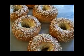 Son rosquillas de pan, tradicional judía de la Europa oriental. El secreto es su especial textura pues son hervidos antes de ser horneados.Mezclar en un bols 375 gr de harina con 3/4 cucharadita de sal fina, 1 cucharada de azúcar y 1 cucharadita de levadura seca granulada ( mezclar bien con el agua templada antes de añadir a los ingredientes secos ) . Hacer un hueco en el centro y añadir 2 cucharadas de aceite de girasol y 250 cc de agua ligeramente templada, a unos 40º máximo.