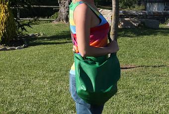 La camiseta de rayas multicolor, el bolso en verde y mis Ray Ban Cats en blanco completaban el outfit.