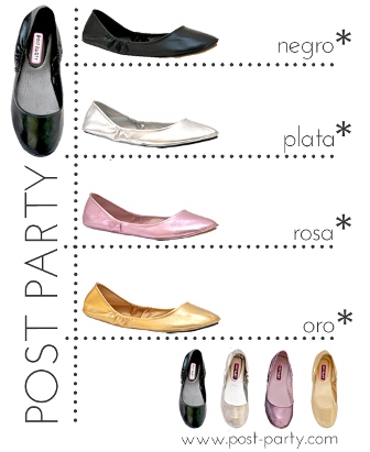 Con POST-PARTY podrás poner remedio a esto, obsequiando a todas las mujeres de tu boda, una bailarina que ha sido concebida para ser doblada por la mitad y guardarse en una práctica bolsa. En el momento de su uso se saca la bailarina y se despliega una segunda bolsa más grande, que sirve para llevar los tacones que uno llevaba hasta el momento.
