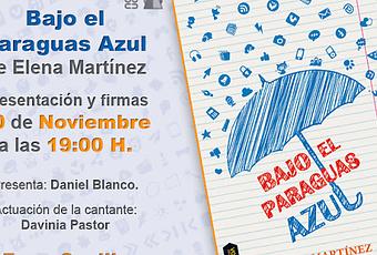 Tenemos el placer de invitaros a la presentación de la novela "Bajo el paraguas azul" de Elena Martínez Blanco, que junto al también escritor Daniel Blanco y la cantante Davinia Pastor, te van a ofrecer una tarde fabulosa. ¡Ven a disfrutar con la mejor literatura juvenil!