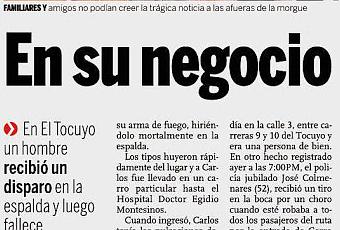 CALUCHO SE VUELVE OTRA VÍCTIMA MÁS DE LA SOCIEDAD VIOLENTA. CALUCHO EL AMIGO SE NOS FUE, YA NO LO VEREMOS MÁS, PERO ESO NO SIGNIFICA QUE LO OLVIDAREMOS. ASÍ DE REPENTE, SIN MÁS, EN ESAS MAÑANAS QUE SE SIENTE LO MALO, LA INEVITABLE...HOY LLORAMOS AL AMIGO, Y LLORAMOS POR ESTA SUERTE DE RULETA DE LA VIDA EN LA CUAL NOS HEMOS VUELTO..... Gracias