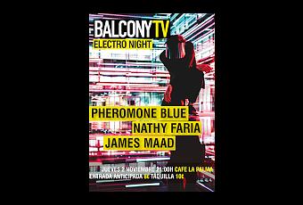 Llega a Café La Palma un evento lleno de sorpresas, bajo el concepto de Balcony TV Electro Night tendremos a una terna sonora de artistas para llenar la pista de baile.El 2/11 en el Café la Palma tendremos a tres proyectos que presentarán sus canciones.