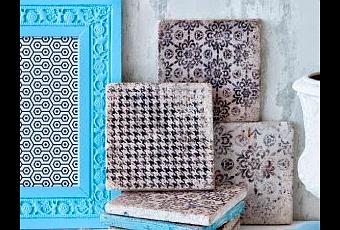 Se trata de crear baldosas con diseños PERSONALIZADOS y con un TOQUE DESGASTADO muy especial... Con las que se me ocurre se pueden crear composiciones para la pared o utilizar como posavasos, bases para jarrones o utensilios de cocina... Yo me decanto por imitar la baldosa TIPO HIDRAULICA como la de la imagen, aunque podría calcarse cualquier otro dibujo...Los materiales que necesitamos son los siguientes: