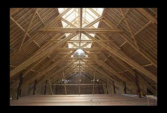 Para asegurar los cimientos, las cañas se clavan hasta más de un metro y medio de profundidad en la tierra y se rellenan de cemento para aumentar su resistencia; los espacios libres entre ellas están cubiertos con conglomerado de cáscara de coco, que actúa como aislante en el húmedo clima tropical indonesio.