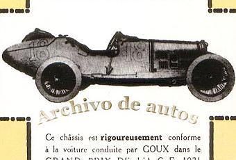 En el año 1921 la marca Ballot logró muchas victorias y algunas de ellas de mucha importancia. Además esos triunfos permitieron que el nombre de la marca llegara al gran público. En el Grand Prix de l’ A.C.F. (Automobiel Club de France) el piloto Jules Goux logró el tercer puesto. A eso hace referencia la publicidad, que estimo es del año 1921, de lo contrario de 1922. Dicha imagen está tomada de la Enciclopedia Salvatdel Automóvil.