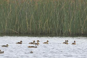 Pato maicero ( 2 a la izq), un pato gargantilla en el centro y el resto sirirí colorado