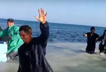 En total 21 personas viajaban en la balsa, que el viernes 1 de abril llego a los Cayos de Florida. Los balseros filmaron el momento de la llegada a Estados Unidos.