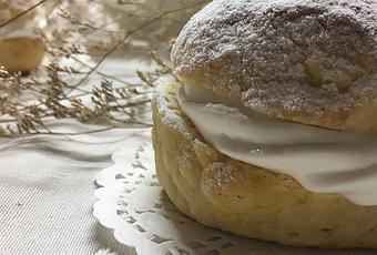Una vez fríos, cortamos por el ecuador sin llegar al final y rellenamos con crema pastelera, nata o trufa, terminamos espolvoreando con azúcar glas.
