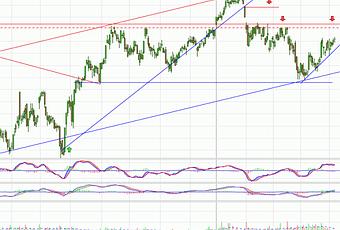 Banco Santander: se dirige hacia la primera zona de resistencia en 5,80 €. A la subida le falta volumen, pero en cualquier caso la volatilidad es reducida y mientras conserve la directriz alcista de corto plazo hay que acompañar el movimiento. Sí supera los 5,80 - 5,85 estaría servida una continuación de las alzas hacia los entornos de 6,20 € en próximas semanas.