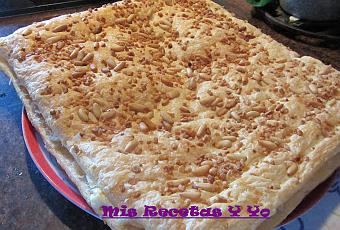 BANDA DE FRUTOS SECOS RELLENO INGREDIENTES CREMA PASTELERA PIÑONES ALMENDRA CROCANTI HUEVO MASA DE HOJALDRE ELABORACION HACEMOS LA CREMA PASTELERA CON LA THERMOMIX. RESERVAMOS EN UN BOL LE PONEMOS PAPEL FILM PARA QUE NO SE HAGA COSTRA. PONEMOS LA MASA DE HOJALDRE EN LA BANDEJA DEL HORNO, PINTAMOS CON HUEVO Y AÑADIMOS LOS FRUTOS SECOS. METEMOS AL HORNO, HASTA QUE VEAMOS QUE ESTE DORADITO Y HAYA CRECIDO. DEJAMOS QUE SE ENFRIE SOBRE UNA REJILLA, UNA VEZ FRIO ABRIMOS POR LA MITAD CON MUCHO CUIDADO. RELLENAMOS CON LA CREMA Y PONEMOS LA CAPA ENCIMA. PODEMOS ESPOLVOREAR CON AZUCAR GLASS.