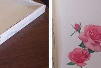 Y acabando con un par de manos de pintura color marfil. Os recuerdo, que entre mano y mano hay que ir lijando!Aplico la transferencia con detalles en decoupage y para finalizar, barnizo y encero.