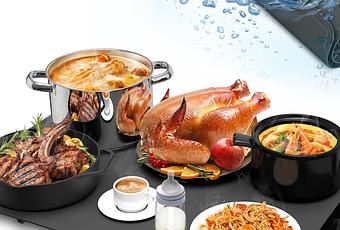 Propiedad Clave: La precisión del control de temperatura. A diferencia de los modelos analógicos, el control digital permite al anfitrión establecer la temperatura exacta (p. ej., $65^\circ \text{C}$) necesaria para la naturaleza de cada plato, evitando que los alimentos sensibles (como el pescado o las cremas) se pasen. La fuerza aquí es la gestión inteligente del calor, a menudo con apagado automático y temporizador, garantizando la seguridad.