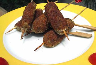 Moldeamos con las manos formando croquetas alargadas y para dar firmeza las untamos por fuera con pan rallado.