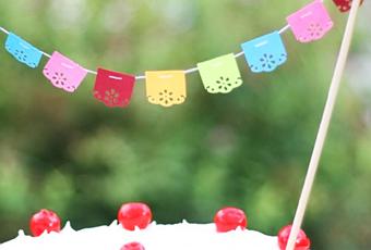 Te quiero enseñar una tendencia que se ve cada vez más y que a mí me encanta: banderines para tartas. Es una forma tan sencilla y a la vez elegante de decorar tartas, mucho más fácil que hacer figuras con fondant o dibujos complicados con cobertura (sin quitarles a esas técnicas y sus resultados espectaculares la importancia que merecen, claro…). Dan un toque festivo, elegante, sencillo, colorido… ¡según el adorno elegido! Las posibilidades permiten mucha creatividad.