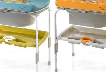 Flip Mon tiene una estantería con reborde de seguridad para evitar que los objetos depositados se puedan deslizar y caer al suelo, también tiene compartimentos para colocar los productos de higiene personal del bebé. La cubeta de baño está fabricada con un material plástico muy resistente, libre de elementos químicos que puedan afectar a la salud del bebé, como por ejemplo los ftalatos o el bisfenol A.