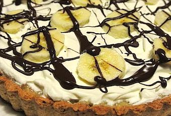 Relleno:400 g de leche condensada30 g de mantequilla1 cucharada de sirope (yo usé de arce porque no tenía este)3 bananas a rodajas200 ml de nata, montada50 g de chocolate negro derretido