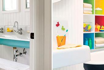 Muchas veces dedicamos mucho tiempo decorando los dormitorios infantiles, pero no prestamos casi atención a los baños para niños. El momento del baño es uno de los favoritos de los niños, y si además su baño está decorado con colores animados y dibujos, la hora del baño será su actividad favorita.