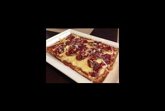 Yo en esta ocasión pude probar de entrante la pizza de Jamón, foie y cebolla confitada. Masa muy fina, como debe ser, muy rica de sabor. Me pedía más cebolla, pero como entrante para tres o cuatro es perfecta.