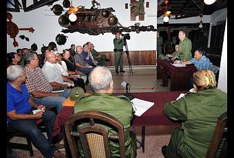Durante la reunión, el General de Ejército estuvo acompañado también por el general de cuerpo de ejército Ramón Espinosa Martín, viceministro de las Fuerzas Armadas Revolucionarias, y por Lázaro Expósito Canto, presidente del Consejo de Defensa Provincial de Santiago de Cuba. Este último transmitió a los presentes experiencias vividas en la vecina provincia santiaguera después del azote del huracán Sandy.