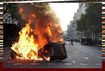 En la fotografía que ilustra el post, un contenedor de recogida de basuras arde en la plaza Urquinaona de Barcelona tras ser incendiado el 29 de septiembre por provocadores "antisistema".