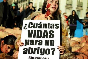“Anualmente más de 60 millones de animales son sacrificados en todo el mundo para comerciar con su piel. Los animales utilizados por la industria peletera viven toda su miserable vida encerrados en pequeñas jaulas hasta que son gaseados o electrocutados vía bucal o anal, para después pasar a ser desollados y destazados. La mayoría de ellos todavía están conscientes en el momento en que se les arranca la piel, y mueren lentamente desangrados.”