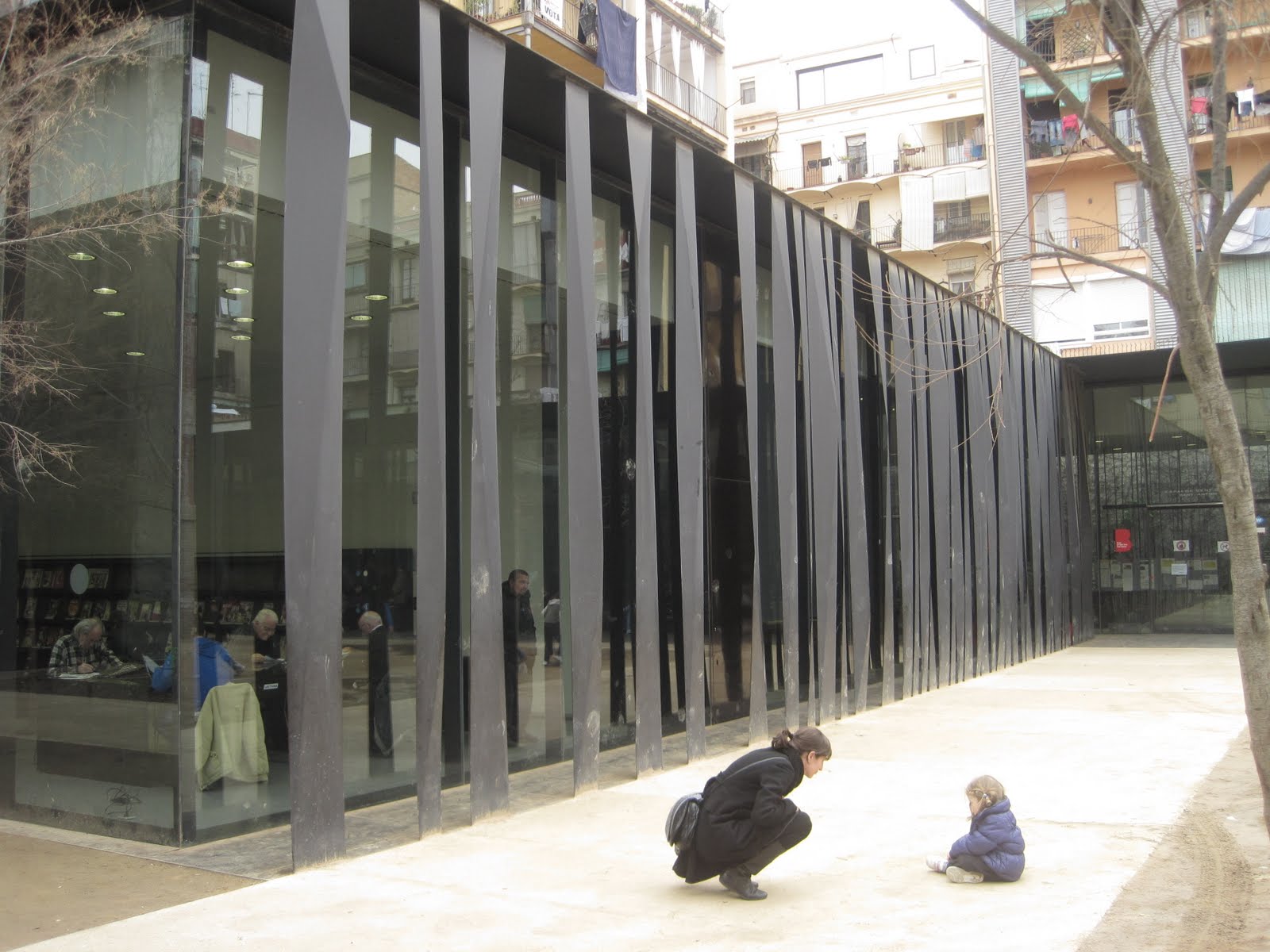 El primero de ellos, comenzando por la proximidad al Pabellón de Mies, es obra de los geniales arquitectos con sede en Olot, RCR. Un reseñable edificio Vivo, que ofrece una alegre entrada al interior de una de tantas manzanas pertenecientes al Ensanche.