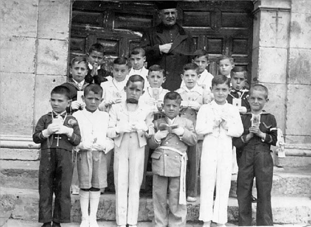 Bien una vez a costados y en la cama no podía más que pensar en mi familia que cuando podrían sacarme siempre me engañaban. Solo les diré que con antelación les comunique lo que en el colegio pusieron las listas todos los que vamos hacer la comunión yo estaba muy contento pues tendría que ser un día especial para todos podíamos salir con la familia y estrenar traje de comunión, con el Rosario y los libros de Nácar pues lo permitían, todo lo preparaban en el patio nos decían lo que teníamos que hacer y no hacer, y también asistíamos a los ejercicios una semana antes, venían bastantes sacerdotes a confesarnos y a darnos charlas en la capilla.Que ilusión teníamos.