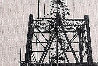 Construcción de la torre de Jaume I, en el muelle del carbón, con 107 m de alta.