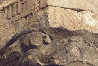 Fragmento del interior de la iglesia de la encomienda de Palau.La pintura mural que decoraba los arcos diafragma del templo primitivo ( apóstol?).Se cree que todo el interior de la iglesia de Palau estaba pintado.Una prueba son las pinturas, descubiertas recientemente, en la parte superior de los mutilados arcos diafragma visibles encima de la actual bóveda de crucería.