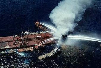 Los barcos apagafuegos acuden a rescatar un petrolero en la costa de México. Utilizando el suministro ilimitado de agua circundante, estos barcos pueden bombear miles de litros de agua por minuto para extinguir fuegos a una distancia de hasta 60 metros. Potentes motores extraen el agua a través de unas tomas de agua de mar que se encuentran en la parte inferior del barco; a continuación se bombea el agua hasta el petrolero por medio de tuberías y mangueras.Revista Tecnología