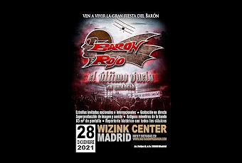 Barón Rojo anuncia fecha en Madrid, se llama El último vuelo en Madrid y será antes de terminar el año en el WiZink Center. La llegada de Barón Rojo al WiZink Center será el 28/12 en este escenario en un show con varios invitados y mucho más.El show de Barón Rojo en el WiZink Center el 28/12 será un show especial, será un show en parte con sabor a despedida donde contarán con amigos en el escenario. En este caso contará con Jorn Lande (componente de Avantasia), una fecha que termina sumándose a una lista de fechas e invitados nacionales e internacionales entre los que se encuentran José Luis Jiménez (Topo), Mel Collins, Graham Bonnet (Alcatrazz, Rainbow), Doro Pesch, Miguel Oñate (Asfalto) y Aurora Beltrán (Tahúres Zurdos).