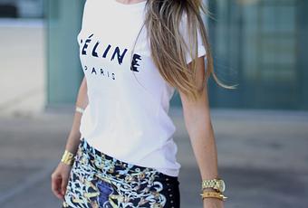 Feliz lunes guapas! Nuevo outfit con la famosa camiseta del logo de Celine que ya habéis visto por el blog. Esta vez, compitiendo por el protagonismo con mi nueva falda barroca. ¿Cuál de las dos piezas gana? Para mi, absolutamente, la mezcla de ambas. Me encanta la sencillez de una camiseta blanca junto a otra prenda estampada, como esta falda… disfrutad de las fotitos y buen inicio de semanita que, por cierto, traerá novedades… no os las perdáis!! (Para las que me habéis preguntado por mis redes sociales dónde encontrar la camiseta, os la he buscado y lo tenéis abajo en los créditos.)