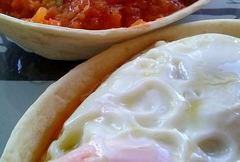 Saca las barquitas del paquete y envuélvelas en papel de aluminio.mete en el horno unos 8 minutos a 180º ( según fabricante ).Rellena con el pisto y ponles encima un huevo frito.