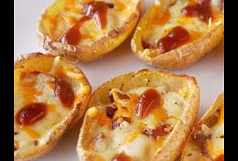 - 5 Hornear las patatas rellenas hasta que el queso se haya fundido bien, unos 4 minutos. Espolvorear con pimienta negra recién molida y un poco más de salsa barbacoa si se desea. Servir inmediatamente. Fuente