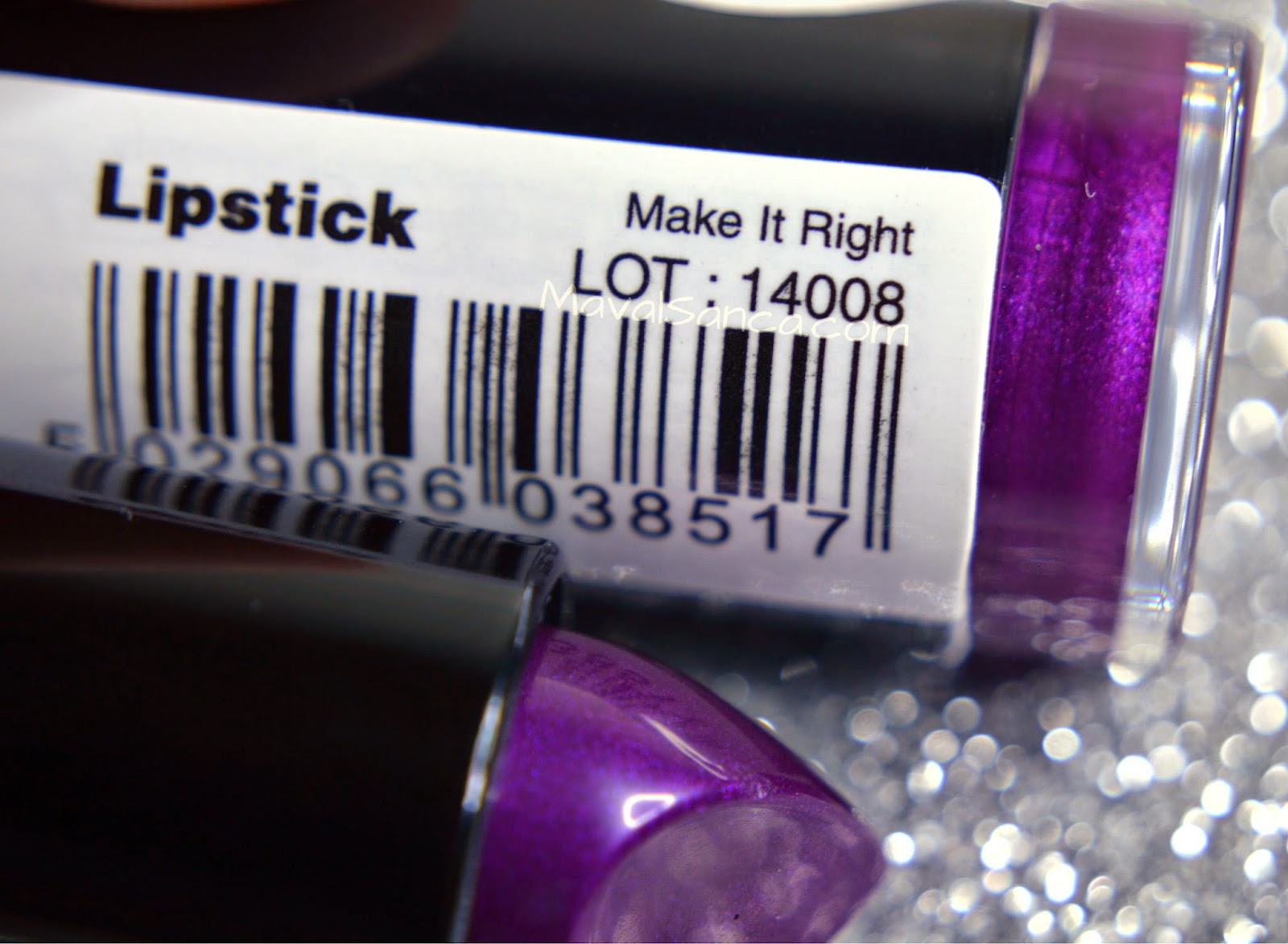 Violet up lipstick with metallic finish.