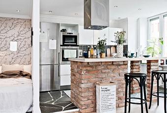 ¿Cuando dejaron de estar de moda los pisos newyorkinos con paredes de ladrillo? ¿En que momento una barra de ladrillo en la cocina seria un toque chic y actual para nuestra decoración? A veces, estas respuestas están a la vuelta de la esquina, y es que nunca el ladrillo dejo de estar de moda, o nunca, imaginamos que una isla en la cocina, tuviera un toque chic con un rudo material.