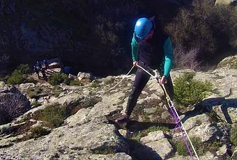 Este cambio de planes, permitió adquirir una mejor técnica de rapel antes del rapel largo bajo la cascada. De esta forma, todos los participantes rapelaron mejor de lo que viene a ser habitual en una primera experiencia. Aguantaron todos sobre sus pies cuando el agua les pasa por encima, sin tener que sentarse en la roca que suele ser la opción que otros participantes, más habitualmente, deciden elegir en su primer día de barranquismo.