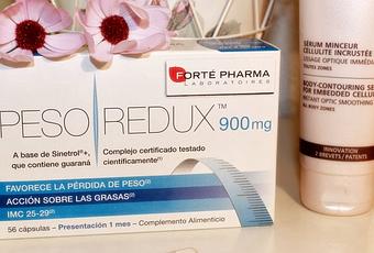 * PesoRedux, FORTÉ PHARMA. Primer suplemente sólo indicado para mujeres con Índice de Masa Corporal (IMC) entre 25 y 29. Rico en guaraná y con un complejo patentado Sinetrol+®, ayuda a reducir la grasa de forma rápida y eficaz. Muy práctico, sólo una cápsula por la mañana, y otra al mediodía.
