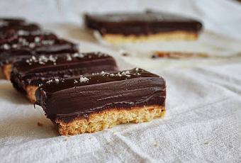 Barritas de chocolate y caramelo espolvoreadas con flor de sal