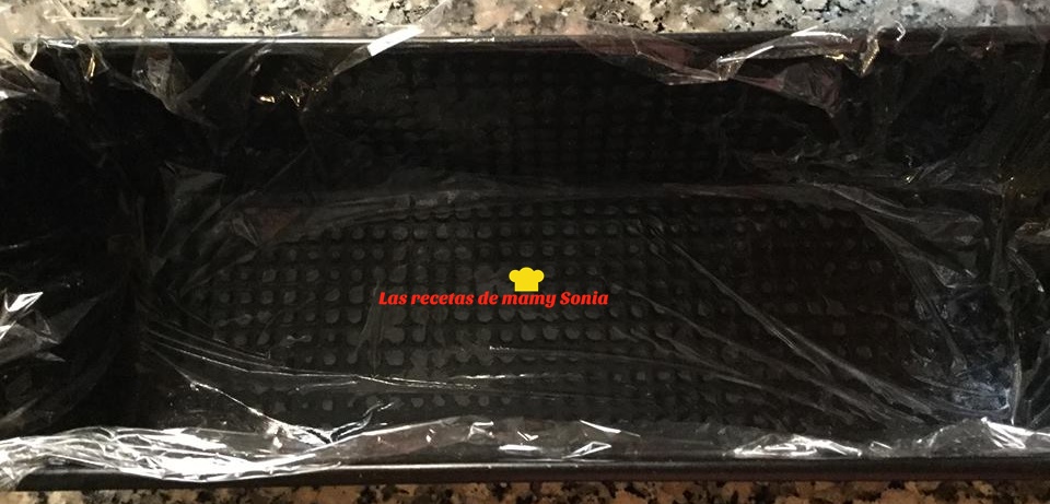 Forramos un molde de plum-cake con film transparante