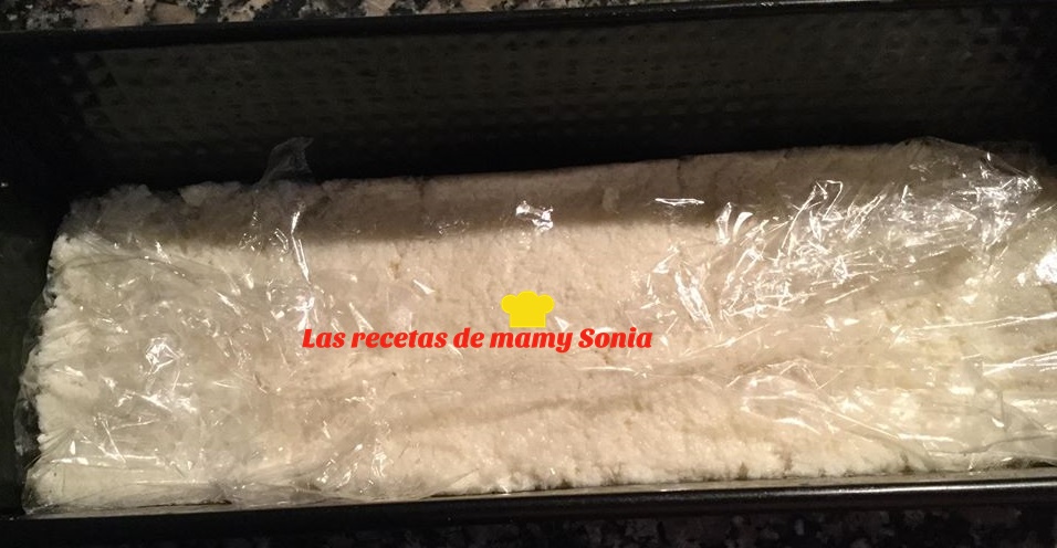 Volcamos la mezcla de coco y alisamos por todo el molde